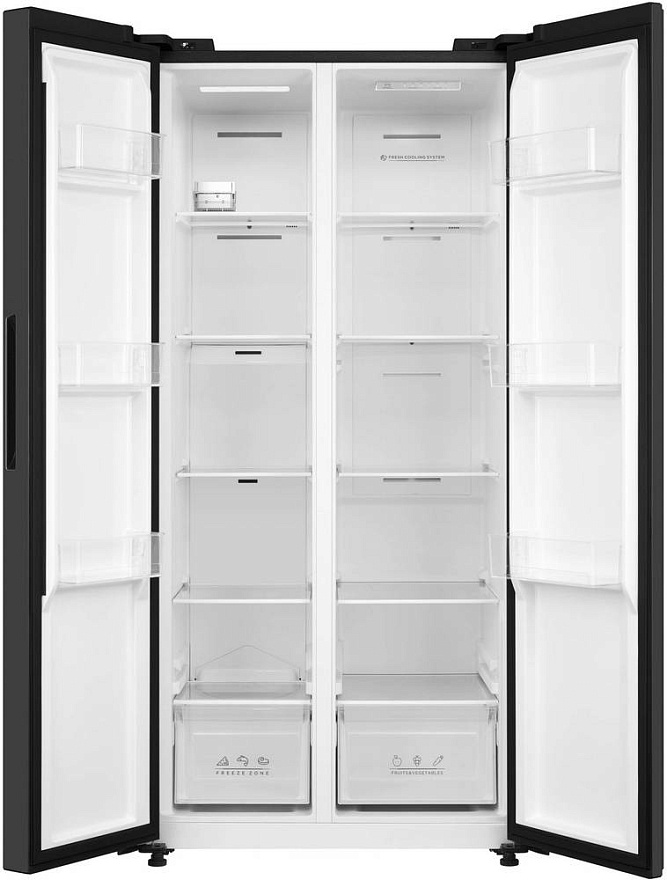 Korting KNFS 83177 N — стильная современная модель сайд-бай-сайд черного цвета, в которой два отделения расположены бок о бок друг с другом. Благодаря системе NoFrost, весь конденсат выводится наружу, не оседая на стенках в виде инея. Это избавляет вас от необходимости удалять лёд и иней. Общий объем оборудования составляет 442 литра, из которых 266 — это объем холодильной камеры, а 176 — морозильной, что позволит Вам хранить в нем большое количество продуктов.